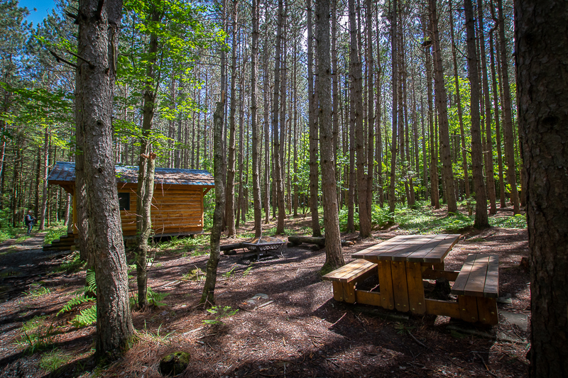 Dans une pinède, à environ 200 mètres du pavillon d’accueil, le Parc régional du Mont-Ham offre 3 camps rustiques.